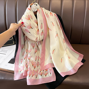 China Factory's Latest Design Double-Sided Printed Silk Head Scarf Stylish Shawl for Women for Spring