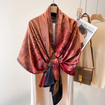 China Factory's Latest Design Double-Sided Printed Silk Head Scarf Stylish Shawl for Women for Spring